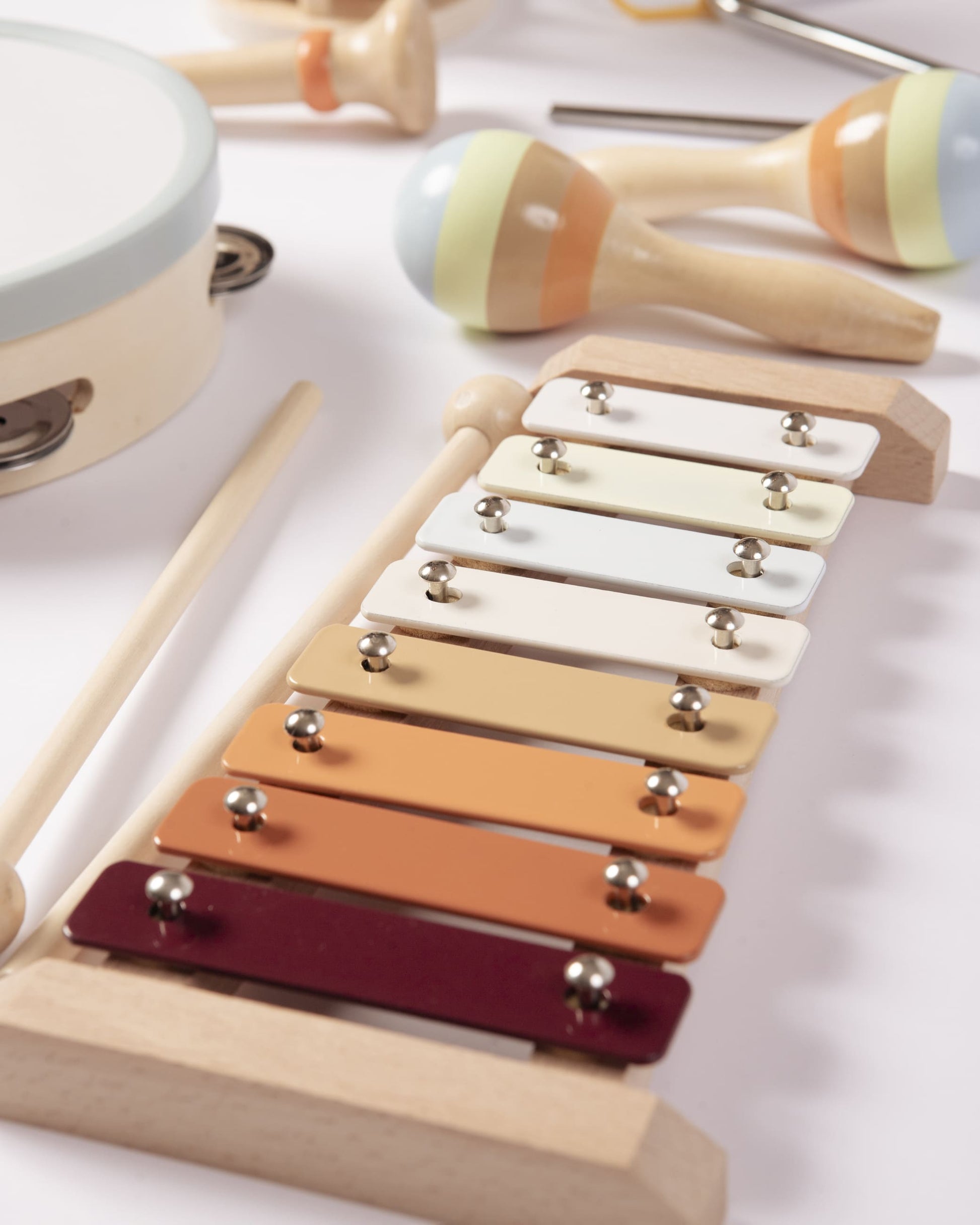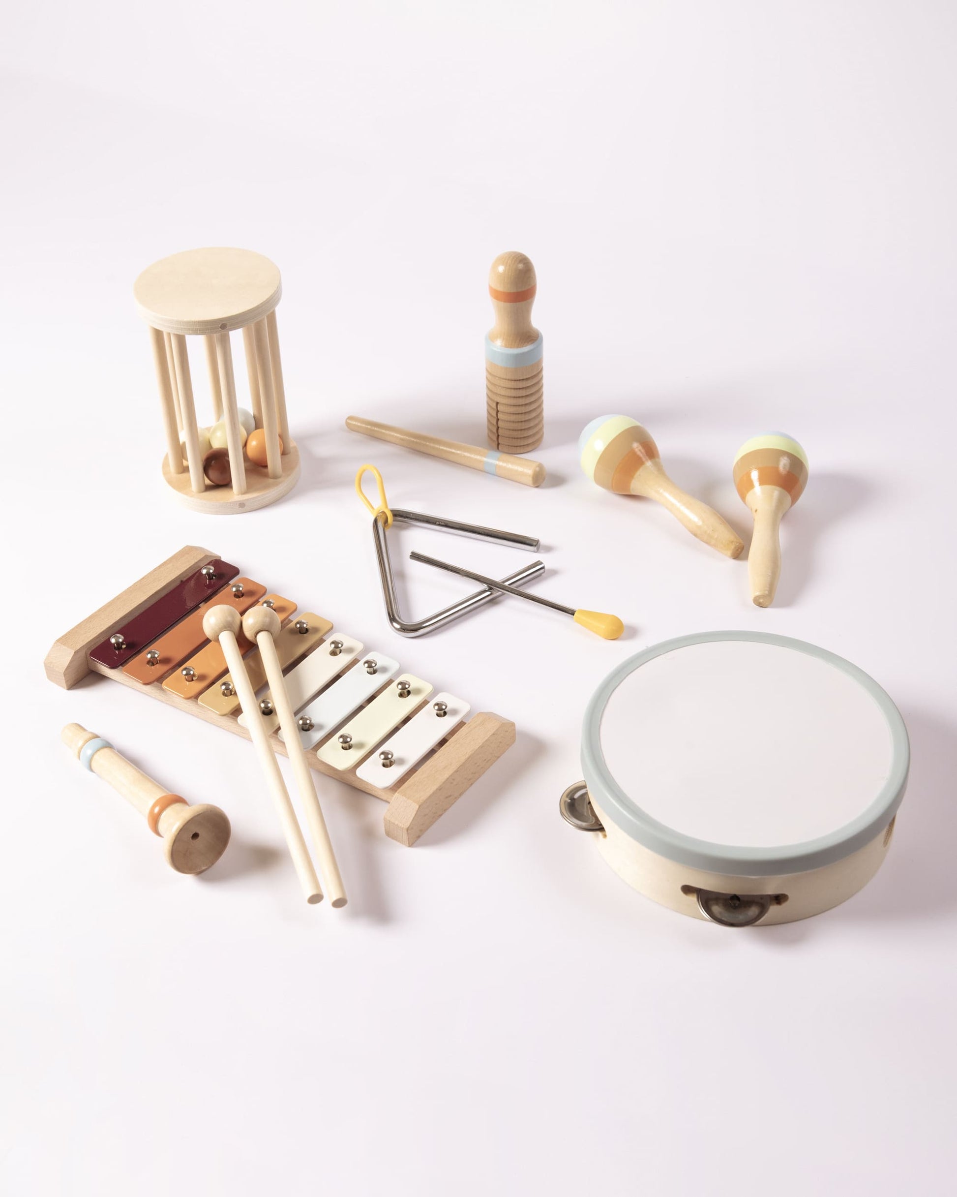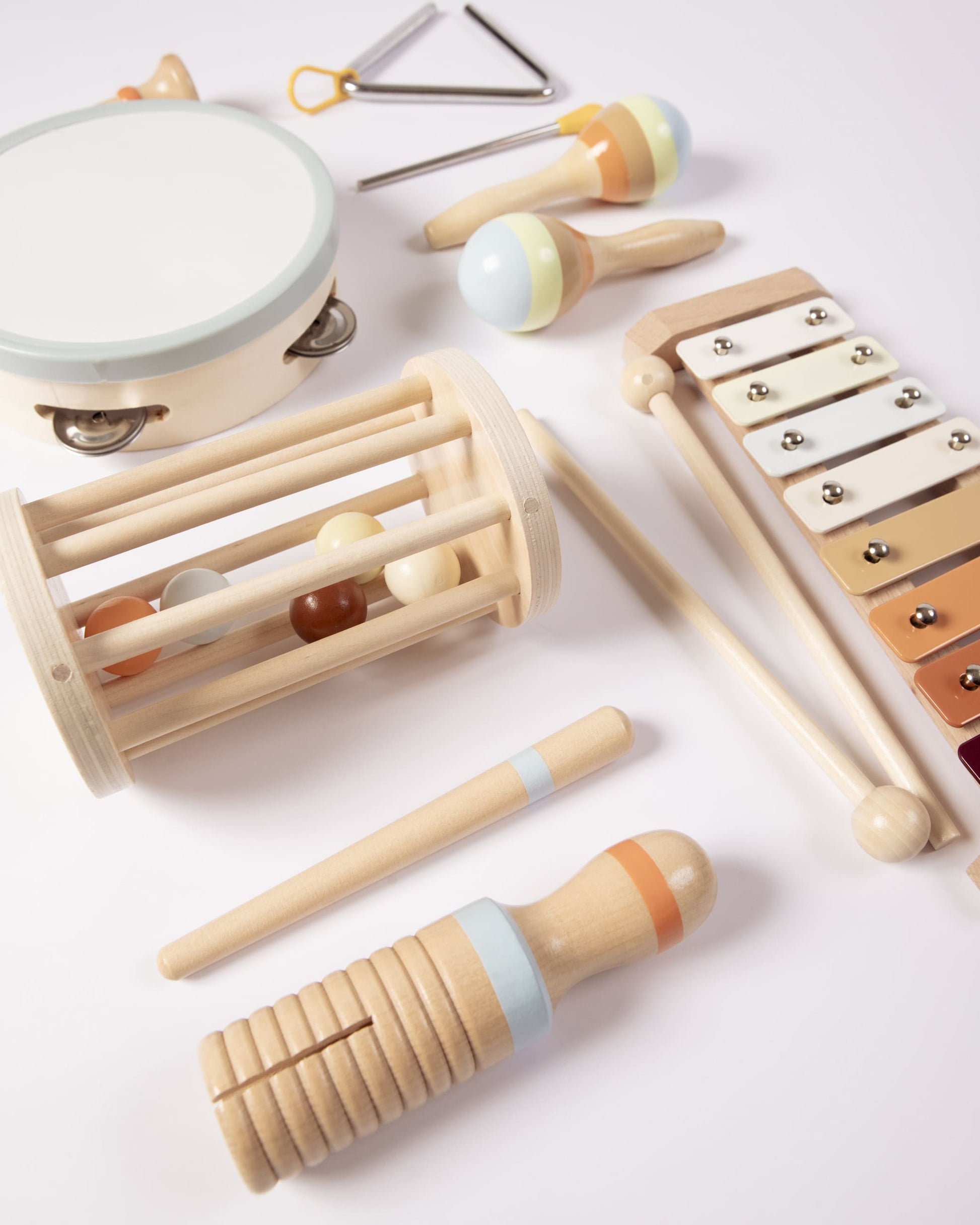El set musical más completo y bonito de TATASHop, fabricado de madera de pino eco-friendly, excelente para aportar herramientas para el desarrollo del niño en el área artística.