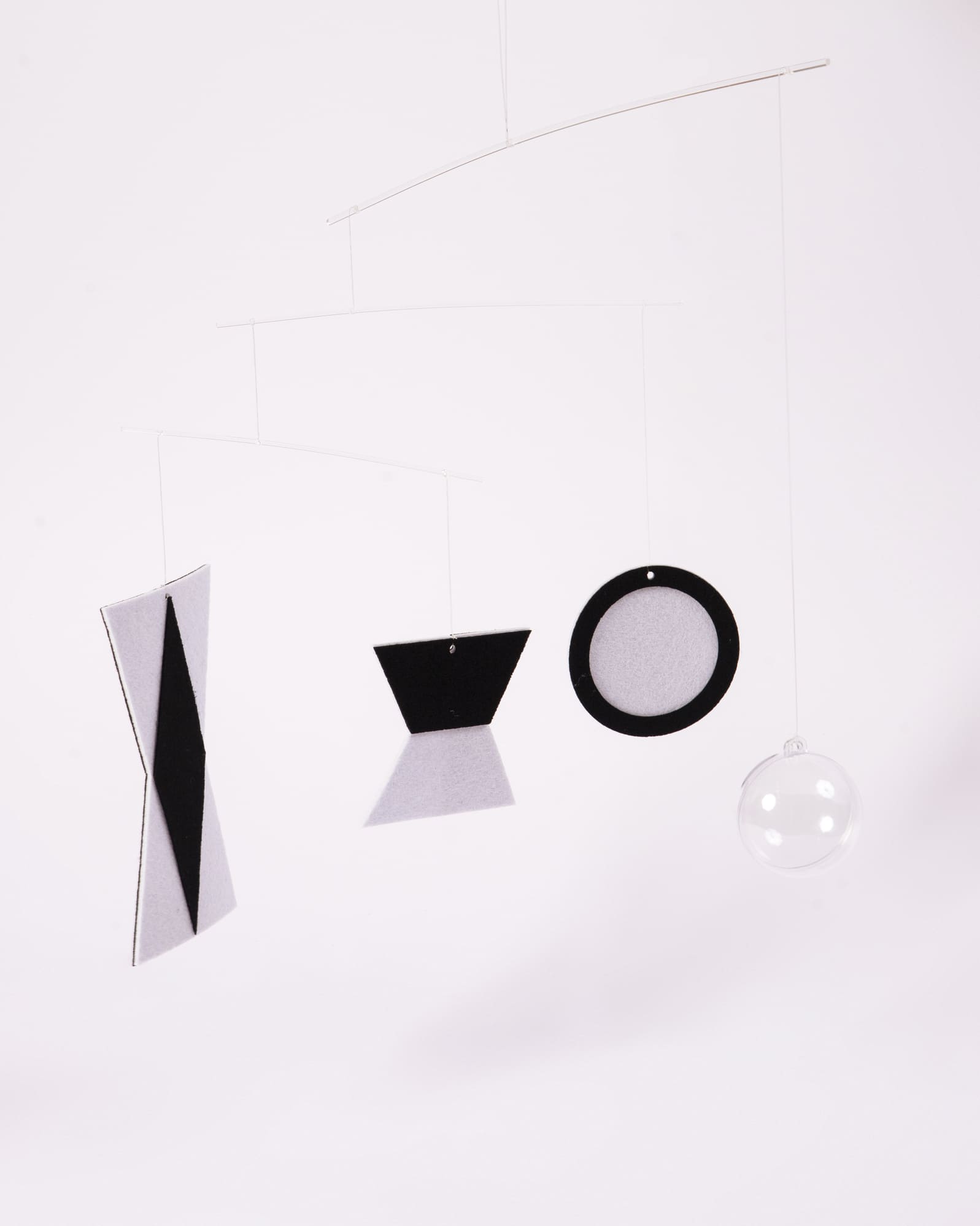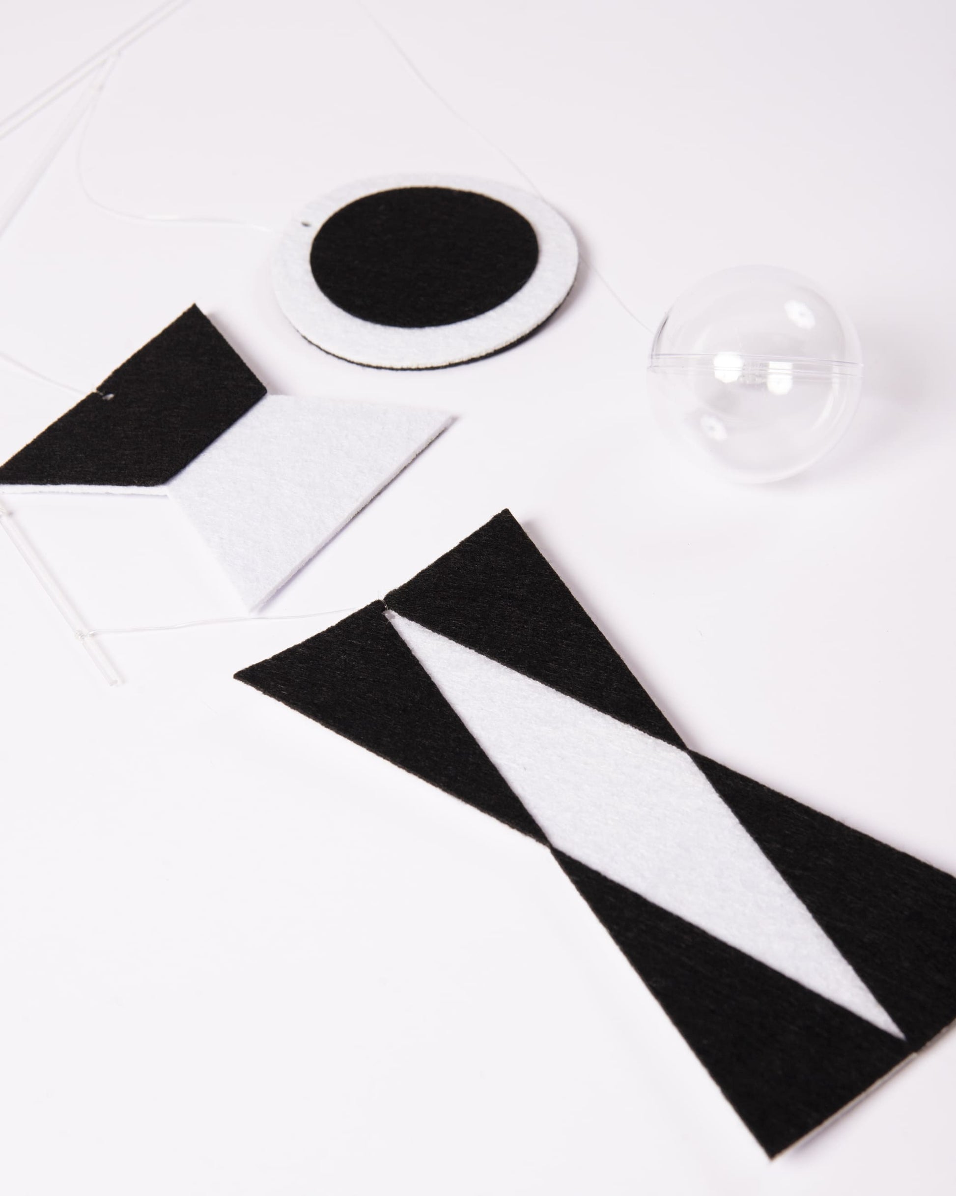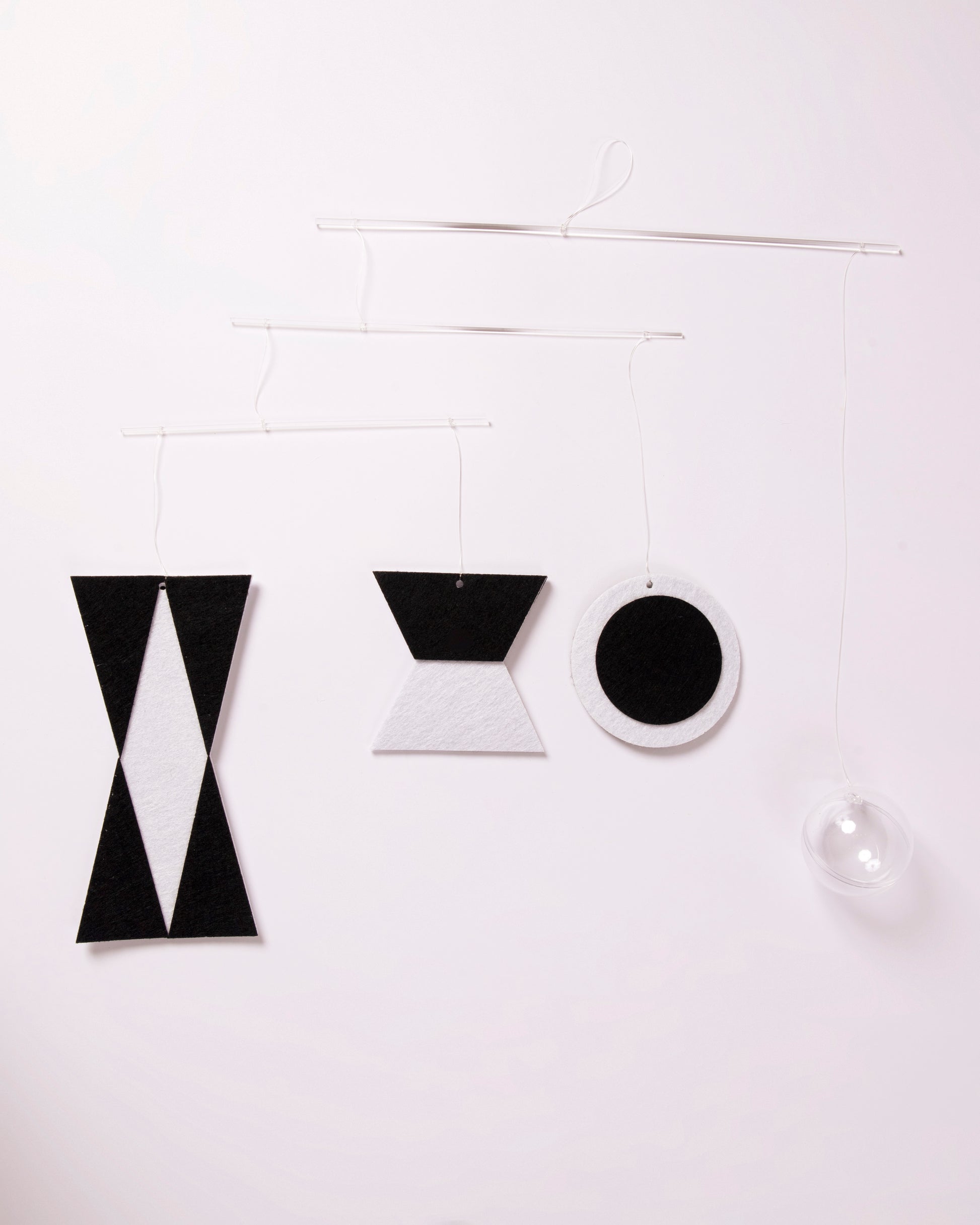 1 Móvil de tela terciopelo blanco y negro y acrílico.