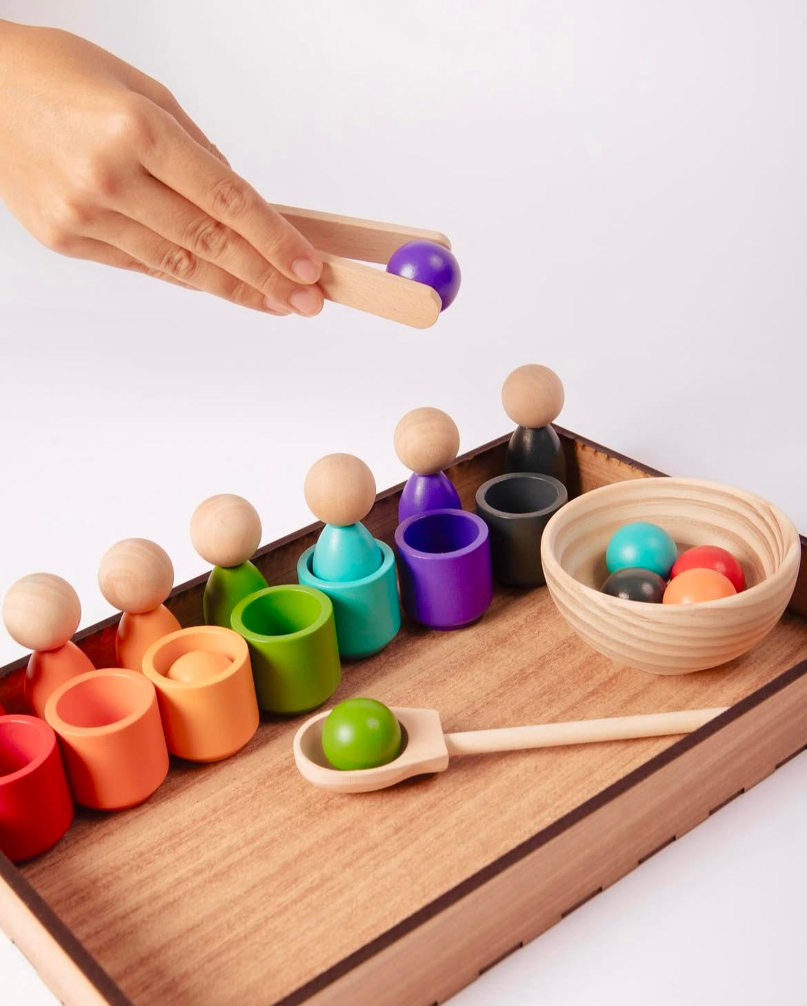 De los SETS mas pedidos, excelente para satisfacer la necesidad de exploración y clasificación de los colores primarios y secundarios, reforzando la psicomotrocidad fina, la concentración, la coordinación ojo-mano y la tolerancia a la frustración.