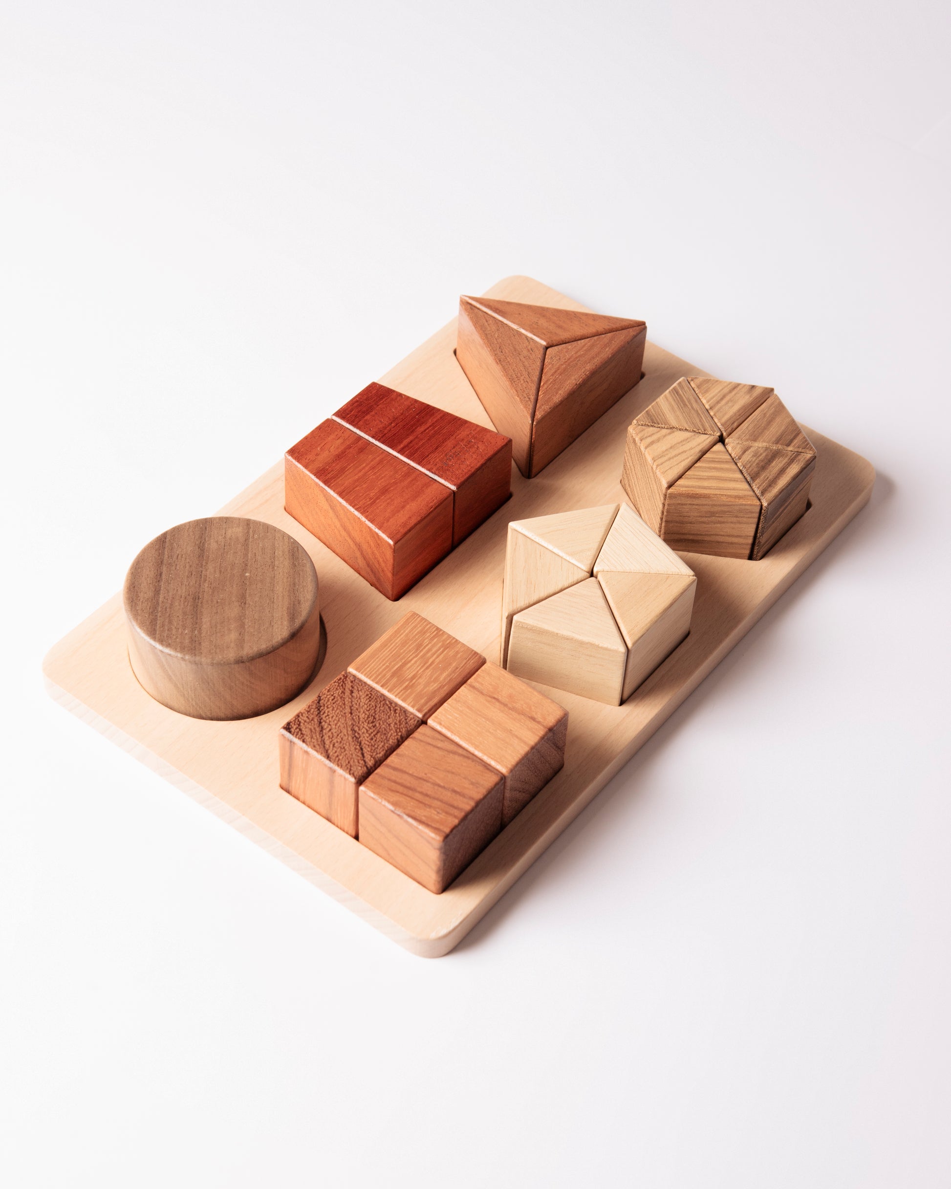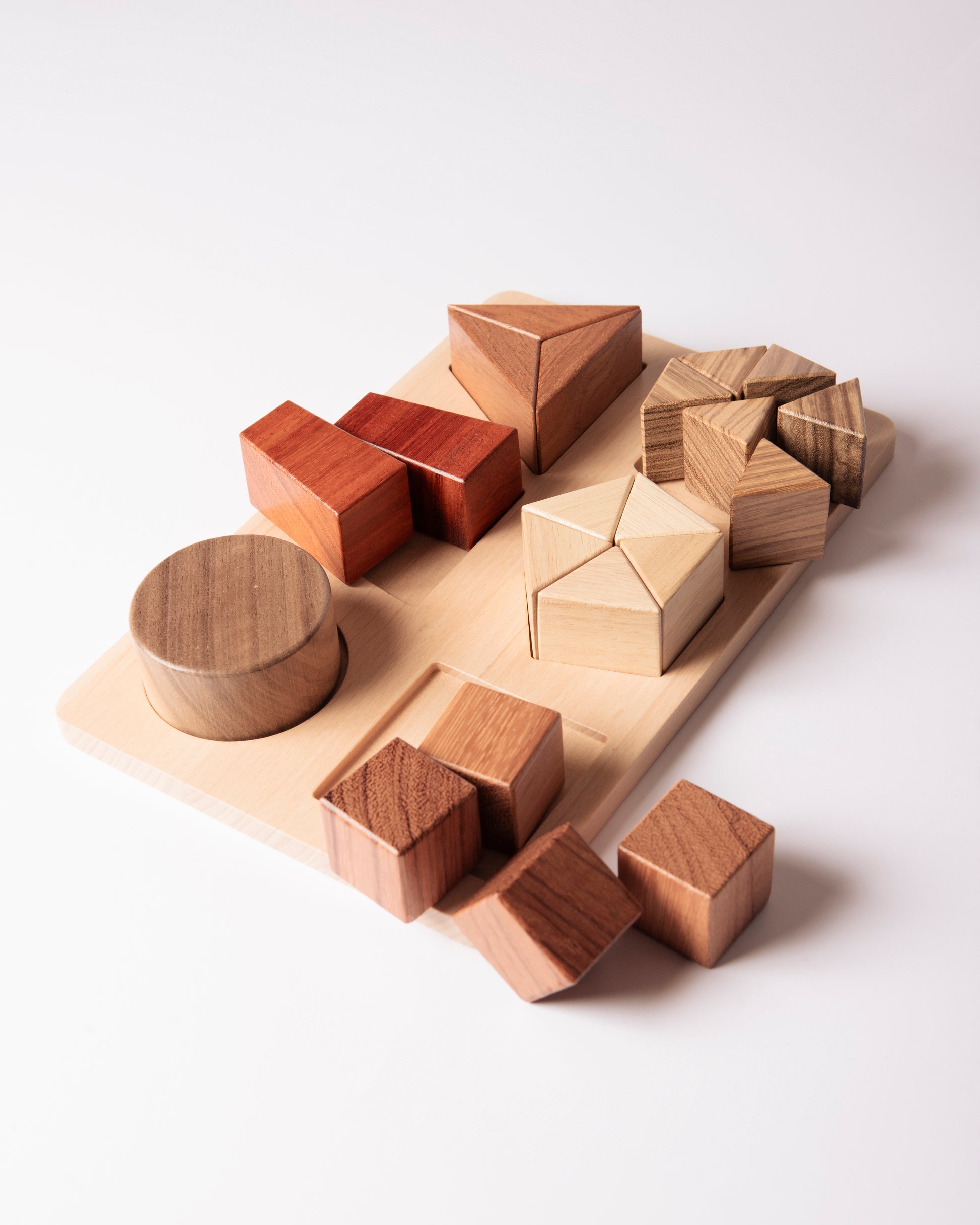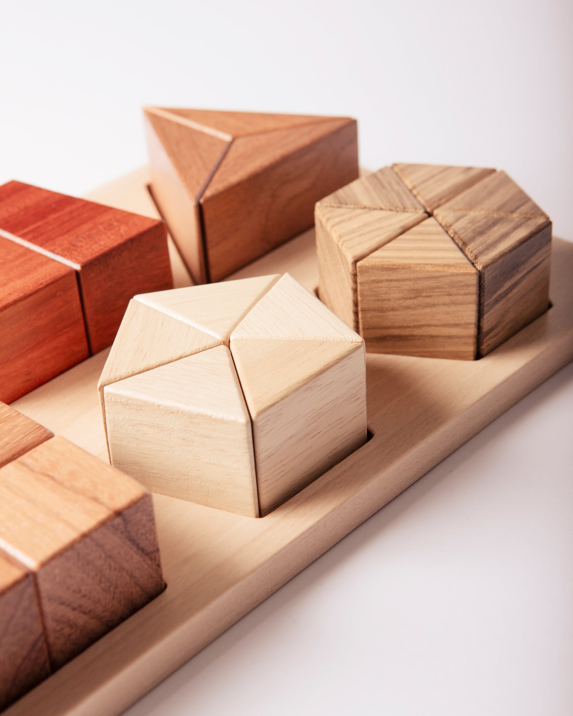 Hermoso puzzle de madera de pino 100% eco-friendly, excelente para trabajar y aprender las figuras geométricas básicas e incluso las fracciones, muy bello terminado en colores neutros para no sobre-estimular.